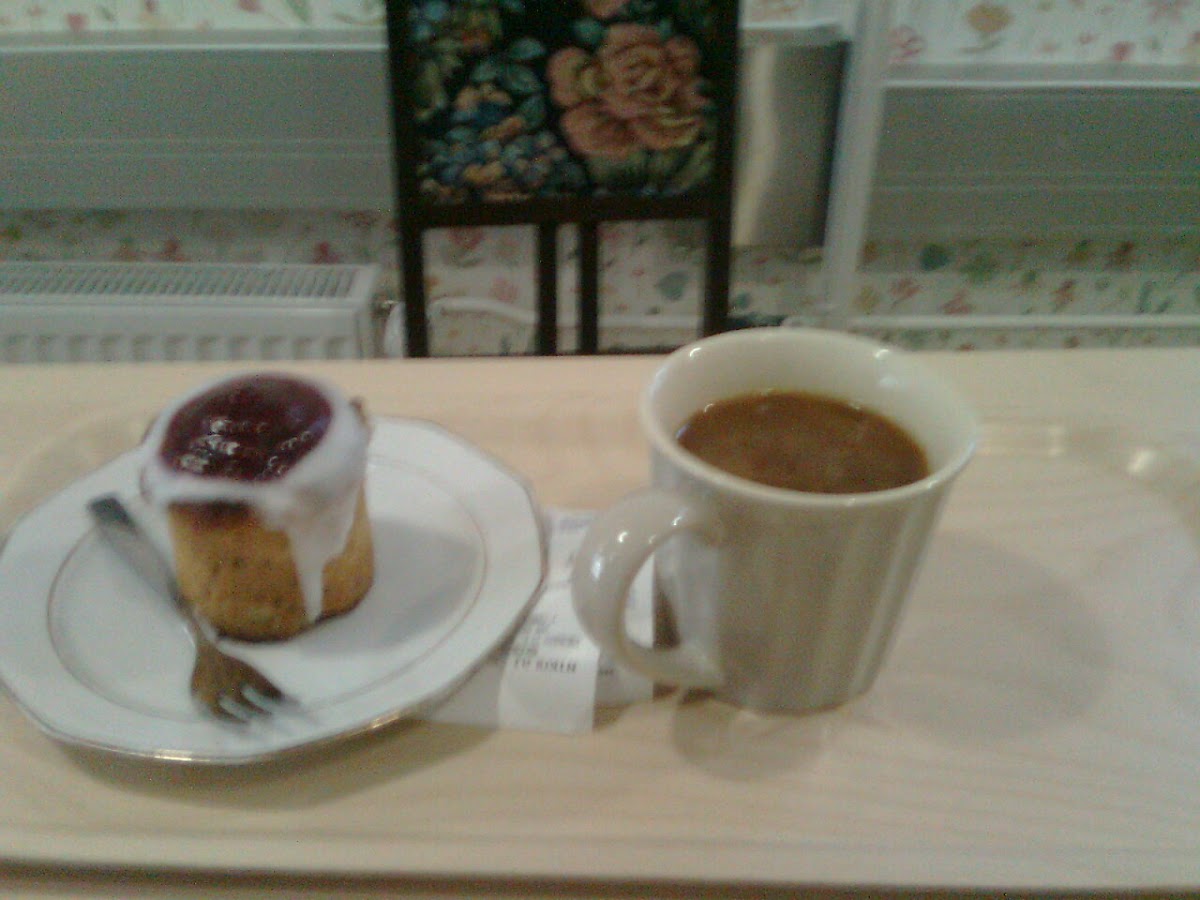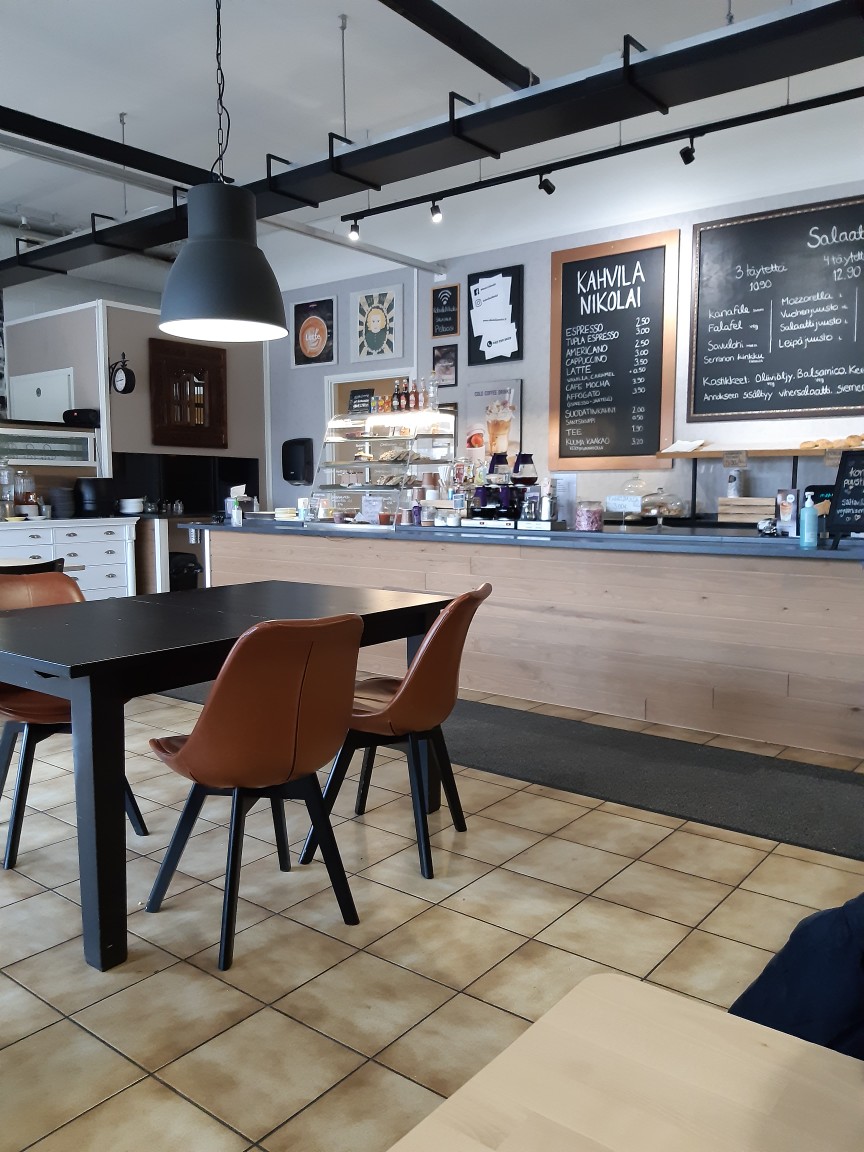 Olen tainnut kulkea ison myyn lähellä katse maassa, kun ehdin asua Joensuussa reilun vuoden ennen kuin tajusin Kahvila Nikolain olemassaolon. Kunhan selviää maskuliinisen hajupilven ohi rappuun, löytyy pieni satumainen kahvila jonka tiloja on kahdessa kerroksessa. Lounas oli maukasta. Ruokarajoitteisena lounaspöydän valikoima pienenee vähän, muttei liikaa. Lounaaseen kuuluu myös jäätelöpikari. Kahvilatuotteetkin näyttivät niin herkullisilta, että tulen ehdottomasti uudelleen maistamaan niitäkin. Harmi kun kauniista ikkunoista on kurjat näkymät. Kahvilan sisustusta on onneksi mieluisa katsella.